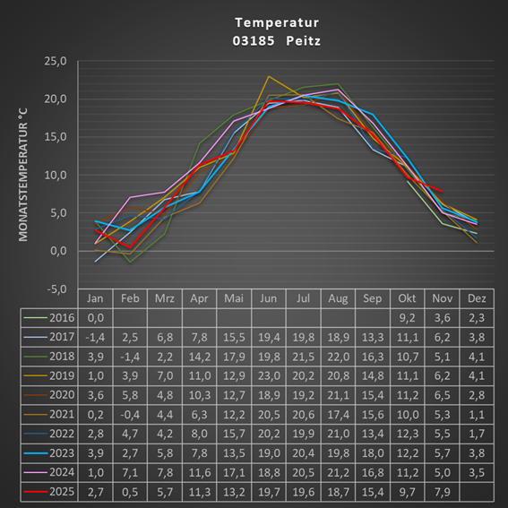 Zu den Wetterwerten der zweiten Station in Peitz II.