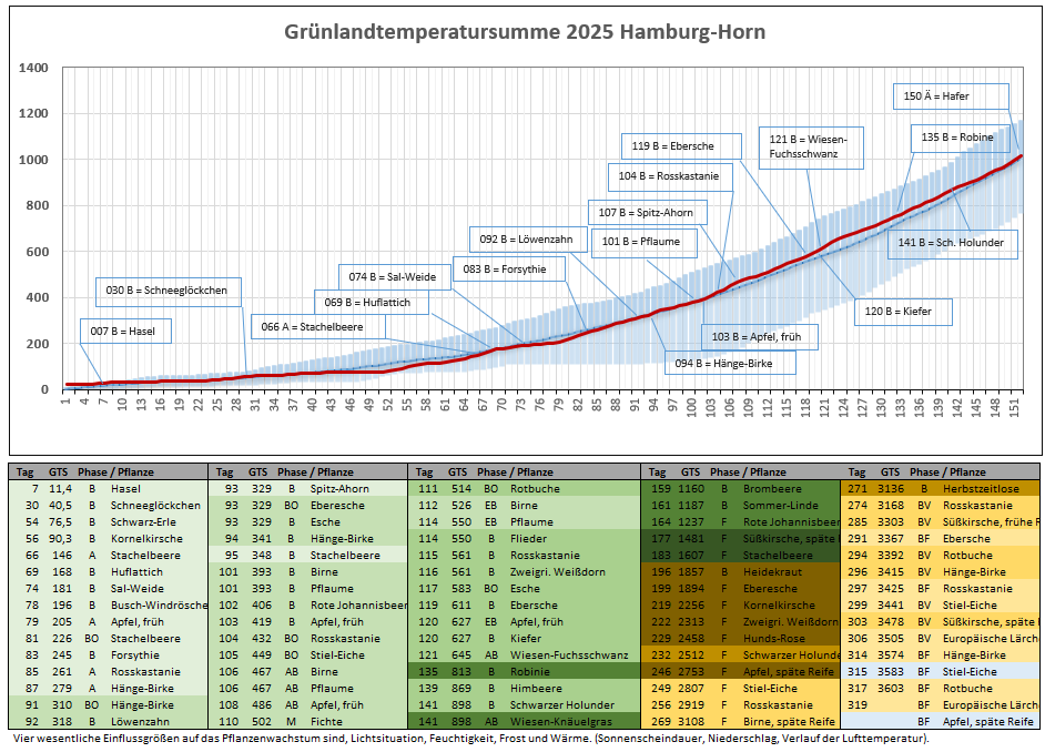 Statistik Einzelner Pflanzen von 1951 bis 2025 aus dem Beobachtungsgebiet HAMBURG.